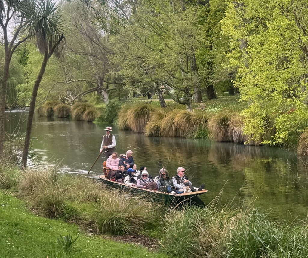 Punting on the Avon River that runs through the city and the Botanical Gardens. We were to go on Saturday, but the rain raised the river too high to pass under the bridges.