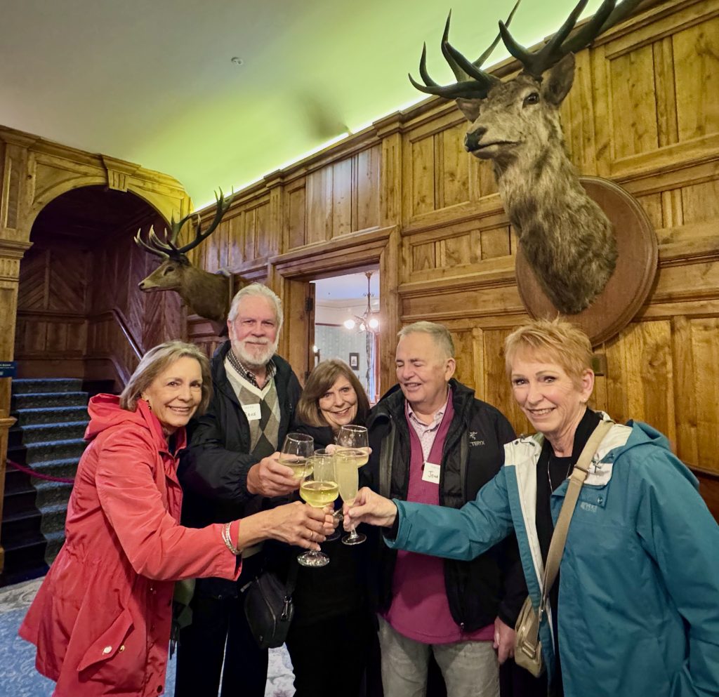 John wasn’t with us, so we cooked up a plan to surprise him the next morning. Two-camera video shoot with Donna’s phone from outside the door and mine from inside our hotel room captured John’s shock and awe. But it’s too big of a file to post. Here we are at the Welcome Dinner.